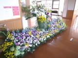 、地元の花屋さんが心を込めて準備していただき、玄関が綺麗なお花でいっぱいになりました。子どもたちも、前回とは違う展示のお花に見入っていました。