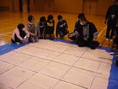 6年生では、大凧保存会の方々をお迎えして大凧づくりを行いました。