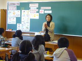 6年生では、給食センターから栄養教諭の先生に来ていただいて、養護教諭