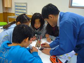 村田製作所から講師をお招きして、理科の学習をしました。