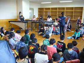 しています。2年生は音楽室で合奏の練習をしていました。6年生の人たち