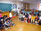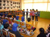 1年生の教室で1年生のお兄さんやお姉さんの音楽や体育の演技や