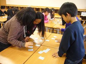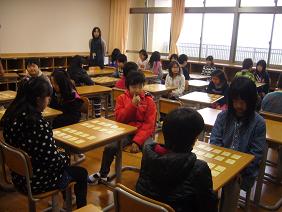 4年生の教室に行ってみると、学級で「百人一首」をしていました。