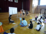 市内の特別支援学級の児童が年2回ブロックごとで交流会を開いています。A1ブロックは、八日市南小学校、八日市西小学校、布引小学校の3校です。本日、3校の児童が集まり、9時40分から交流会を八日市南小学校の体育館で開催しています。各校の紹介や、グループに分かれての自己紹介をした後、楽しいゲーム等で体を動かしながら交流を深めます。