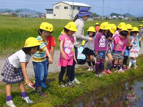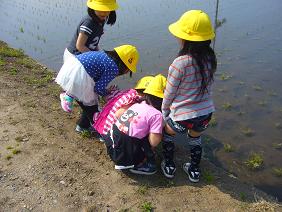 カエルの卵などを見つけていました。カエルの鳴き声も聞かれました。