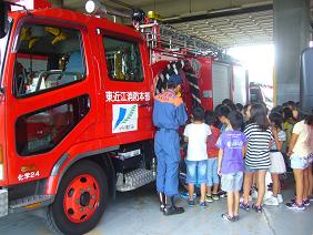 消防車、司令室、消防士さんのお部屋を見学しました。