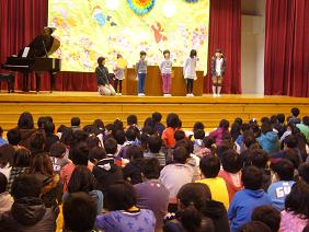 終業式では、校長先生の話に続いて、2学期のがんばったことの発表や、