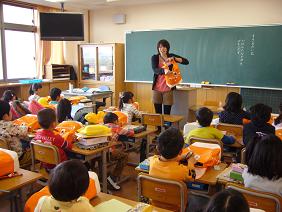 入学して2日目の1年生では、朝の準備について先生から教えてもらい
