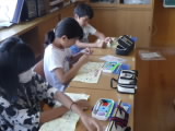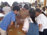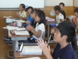 暑い日が続きますが、八日市南小学校の子どもたちは元樹に勉強しています。今日は、水泳の学習にぴったりのお天気で、プールからは賑やかな声が聞こえていました。音楽室からは、楽器や手拍子で軽快なリズムを刻む音が聞こえてきます。高学年の教室では、針と糸と布を使って裁縫の基礎を学ぶ勉強をしていました。