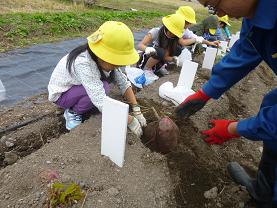 そこで、高校生のお兄さんやお姉さんに手伝ってもらってサツマイモの