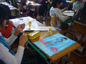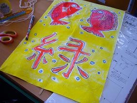 4年生では、学習した「はんじもん」を考えた凧を作っています。仕上がったら、