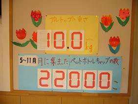 集めています。11月までに集まった数を校長室の掲示板に掲示して