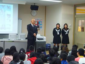 聖徳中学校生徒会役員の人と校長先生にお越しいただいて、聖徳中学校での