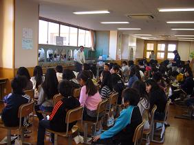 4年生のワークスペースでは、4年生の全学級がイスを持ち出して