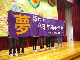 ようこそ八日市南小学校のページへお越しくださいました。八日市南小学校は我が国最初の民間飛行場誕生の地であり、戦後の開拓から住宅地へと変貌を遂げたチャレンジとフロンティアの地、沖野ケ原にあります。