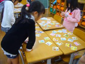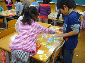1年生では、カルタを楽しみました。子どもたちが互いに読み手になって