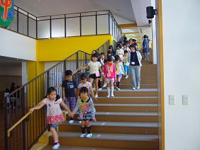 1年生は、2年生のお兄さんやお姉さんに連れられて学校内をたんけんしました。