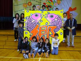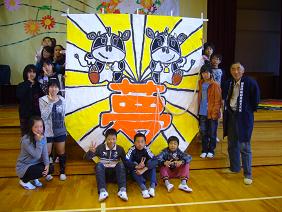 糸つけも終わり、大凧が完成しました。後は、凧揚げの日を待つばかりです。
