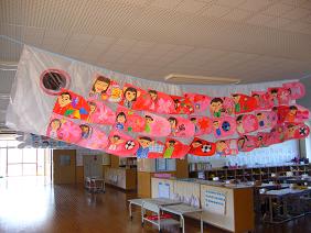 2年生では、こいのぼりを作ってワークスペースに飾りました。