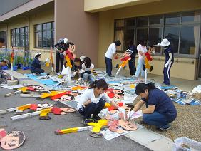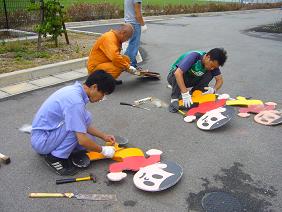 飛び出し人形の補修作業を行いました。町内委員さんには、点検と搬入をい