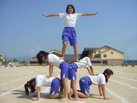 5・6年生で取り組んでいる組体操も完成間近になりました。