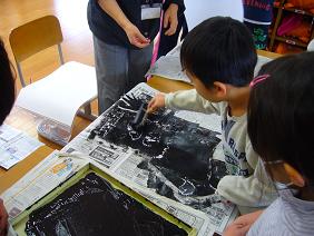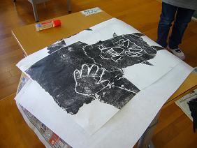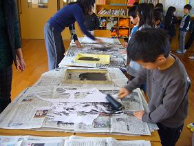 1年生では、鬼の顔の紙版画を刷りました。何度も何度もこすって、仕上げて